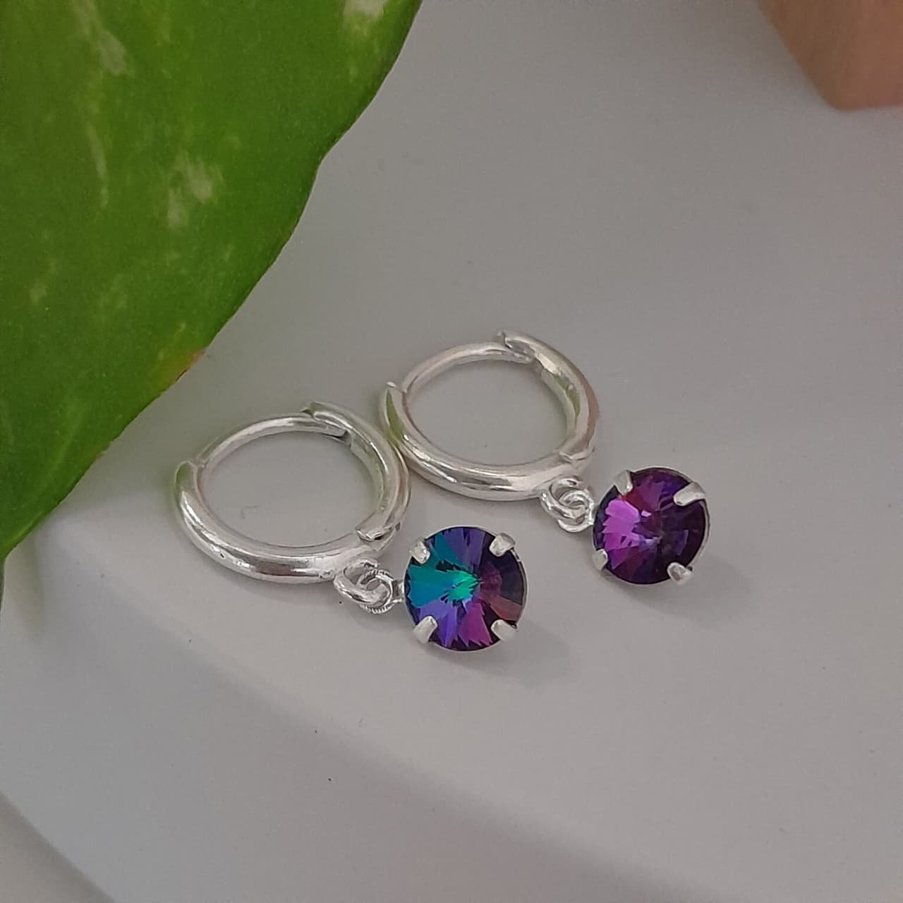 Aros argollas 10mm con cristal redondo azulado swarovsky – Laminados