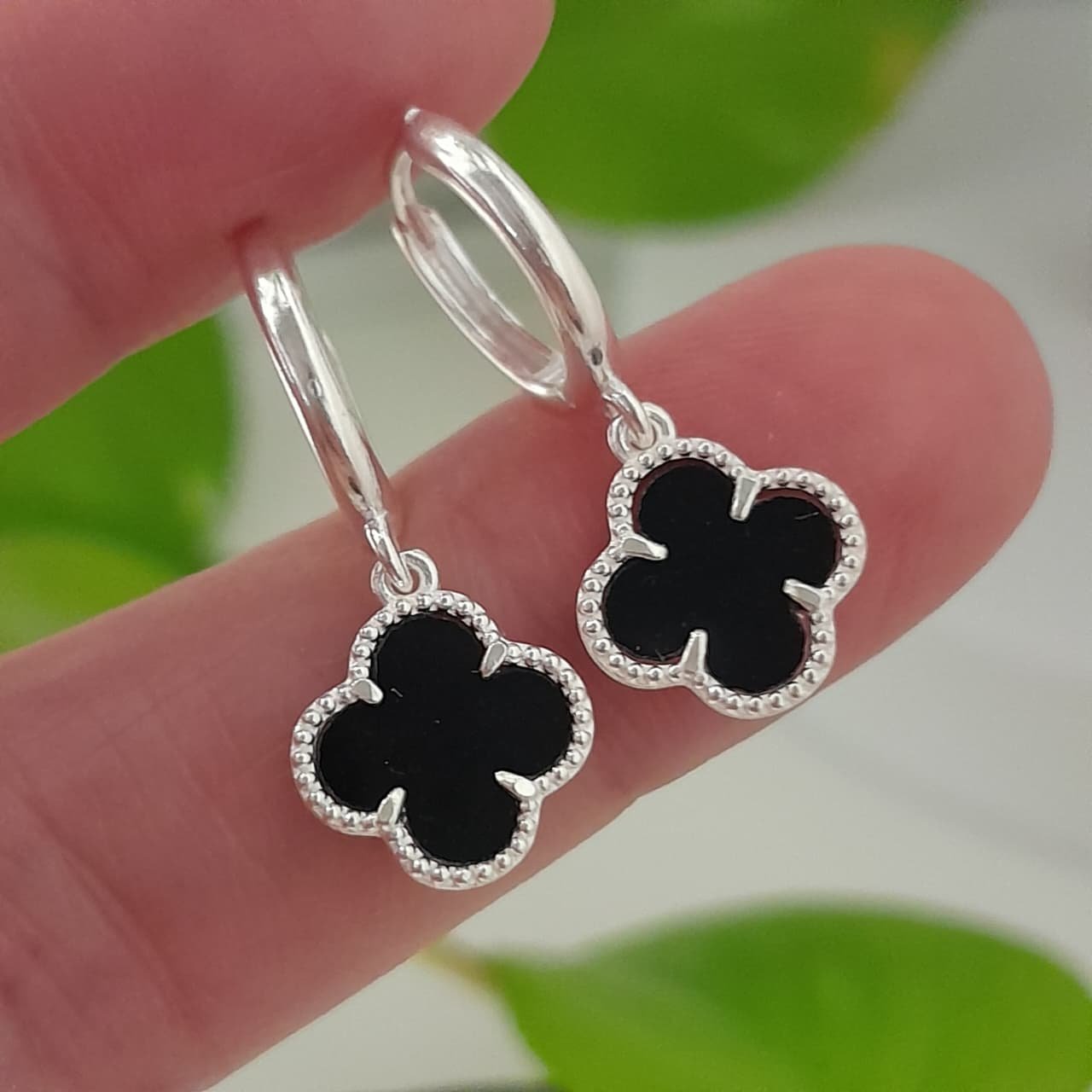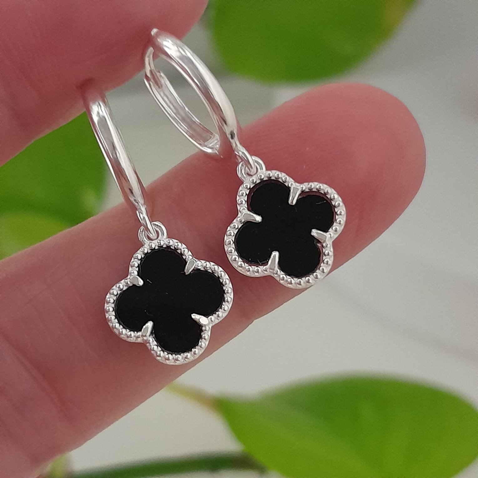 Aros colgante trébol esmaltados negros – Laminados
