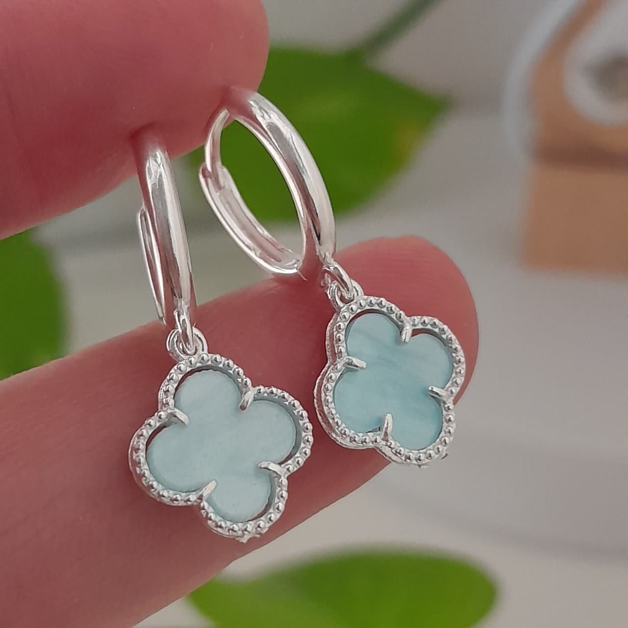 Aros trebol esmaltado celeste – Laminados