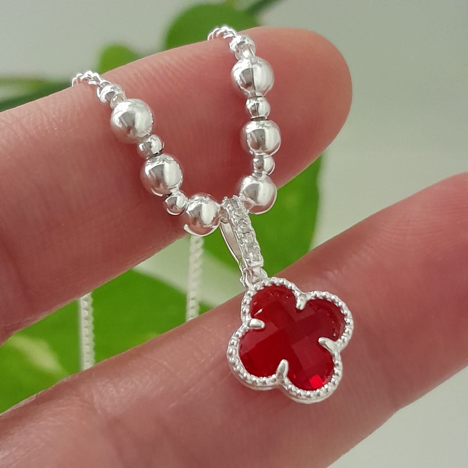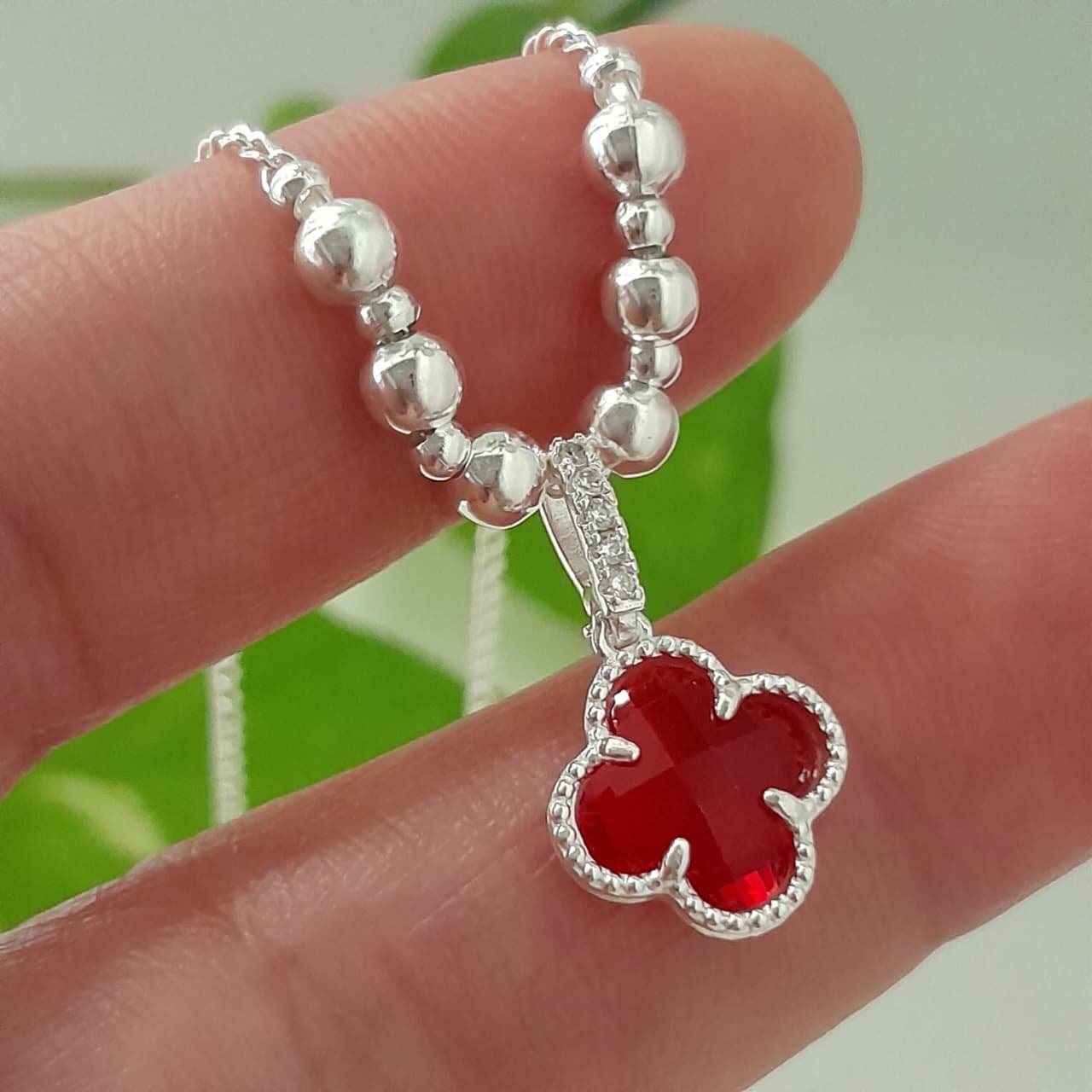 Conjunto cadena con bolitas degrade y dije trébol rojo – Laminados