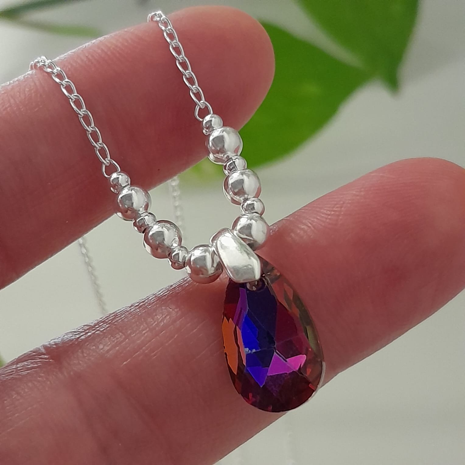 Conjunto cadena con bolitas degrade y dije gota cristal swarovski fucsia tornasol – Laminados
