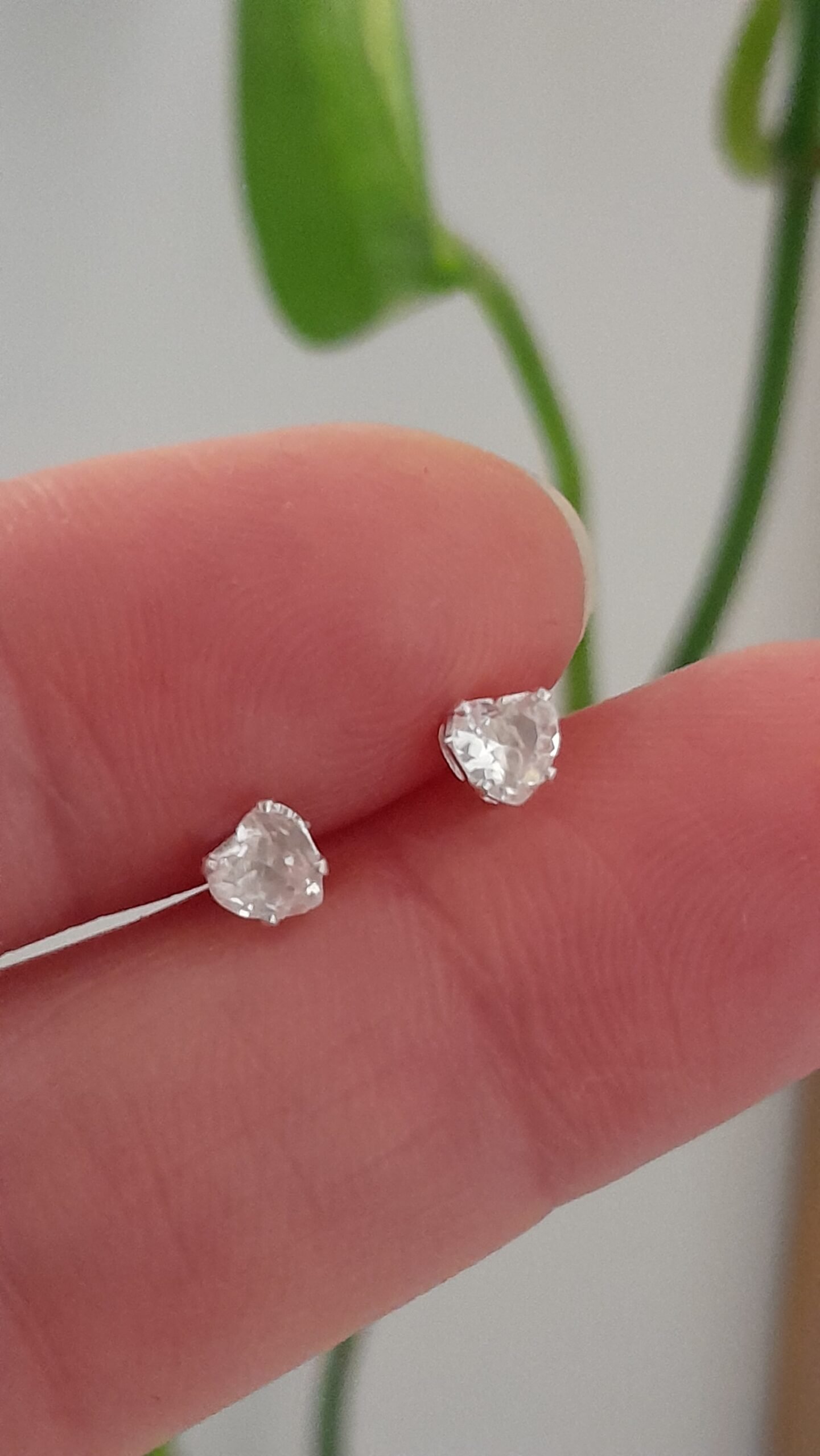 Aros Abridores brillo corazon cristal super mini – Plata 925