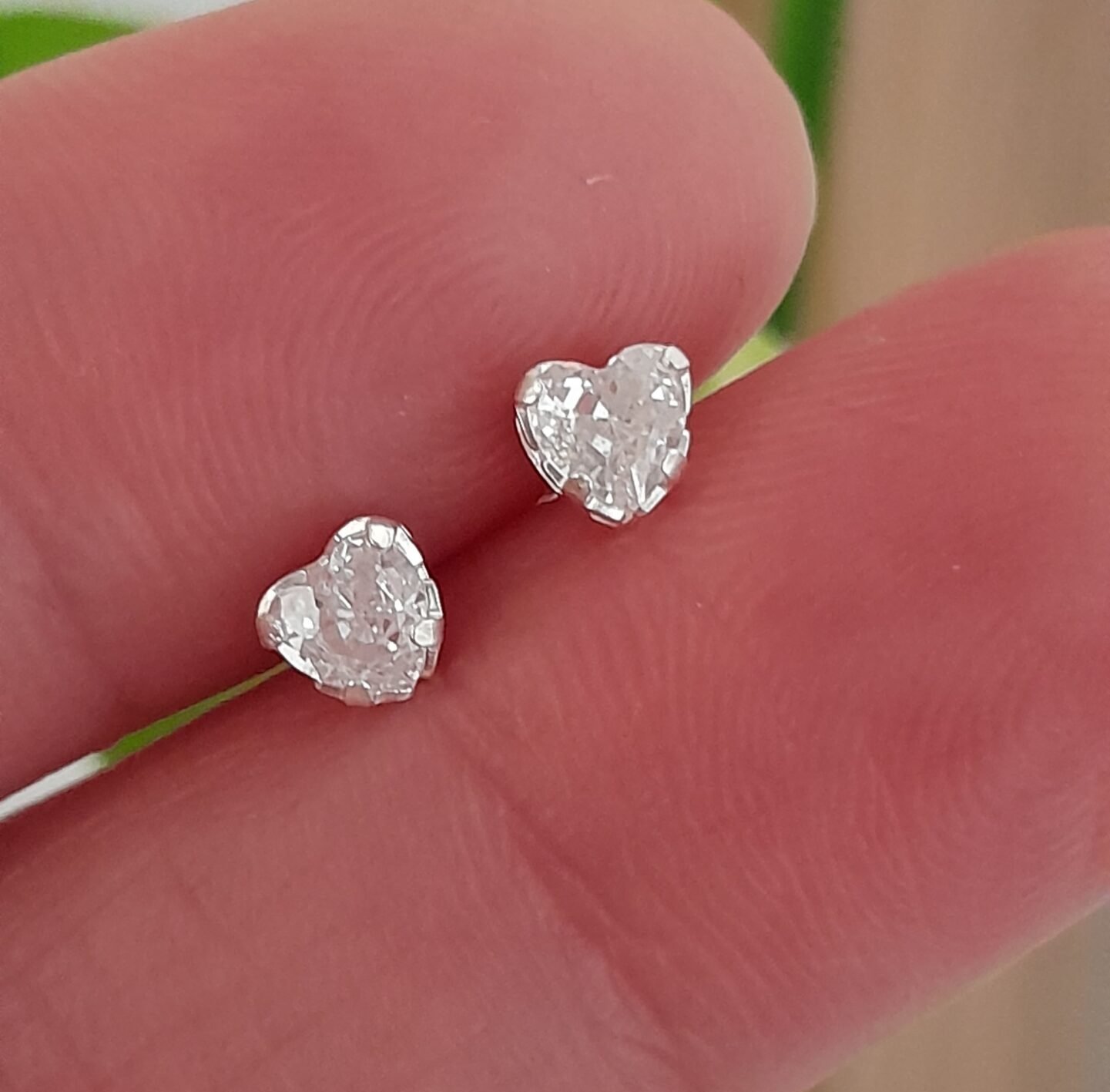 Aros Abridores Brillo corazón pequeño cristal – Plata 925
