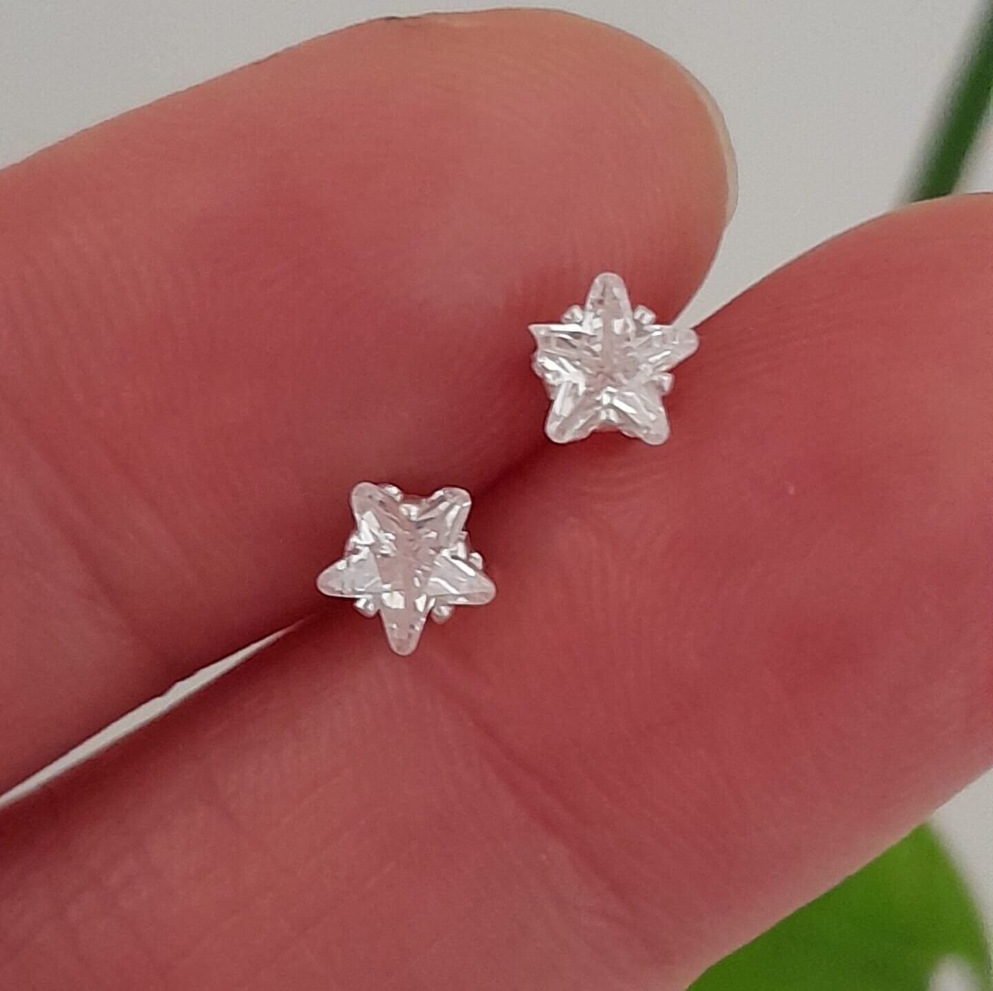 Aros Abridores Brillo estrella pequeña cristal – Plata 925