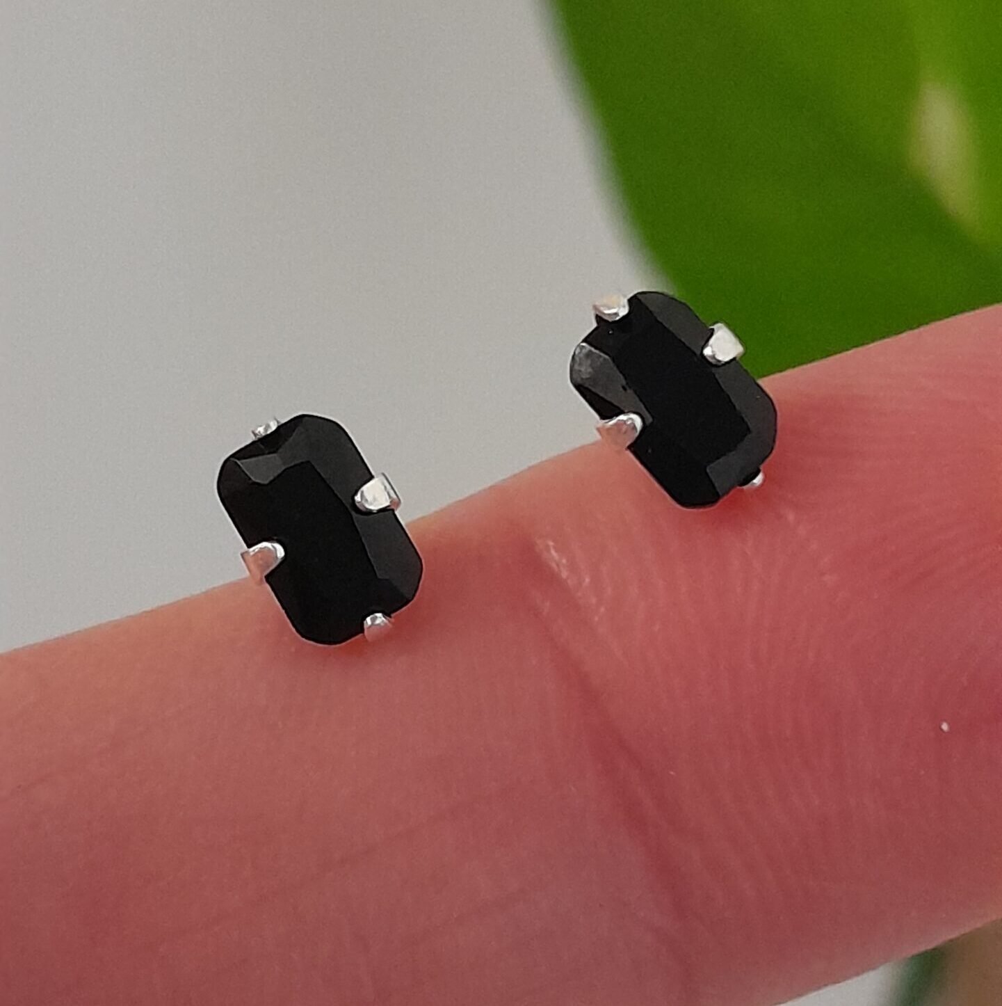 Aros Abridores Brillos negros rectangular – Plata 925