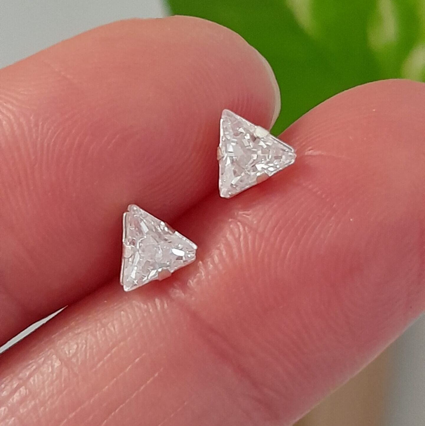 Aros Abridores Brillos triangulo cristal – Plata 925