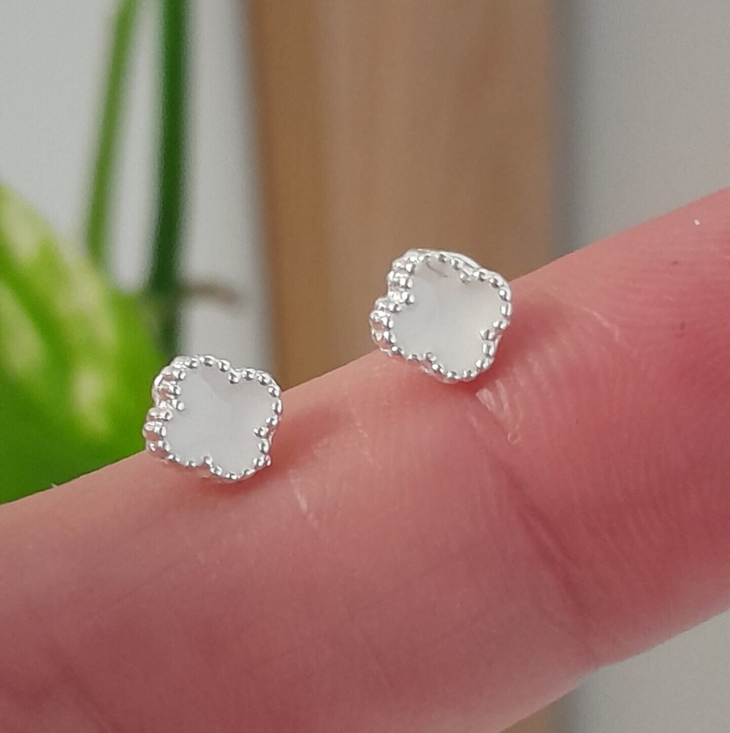 Aros Abridores esmaltado trébol pequeño blanco – Plata 925