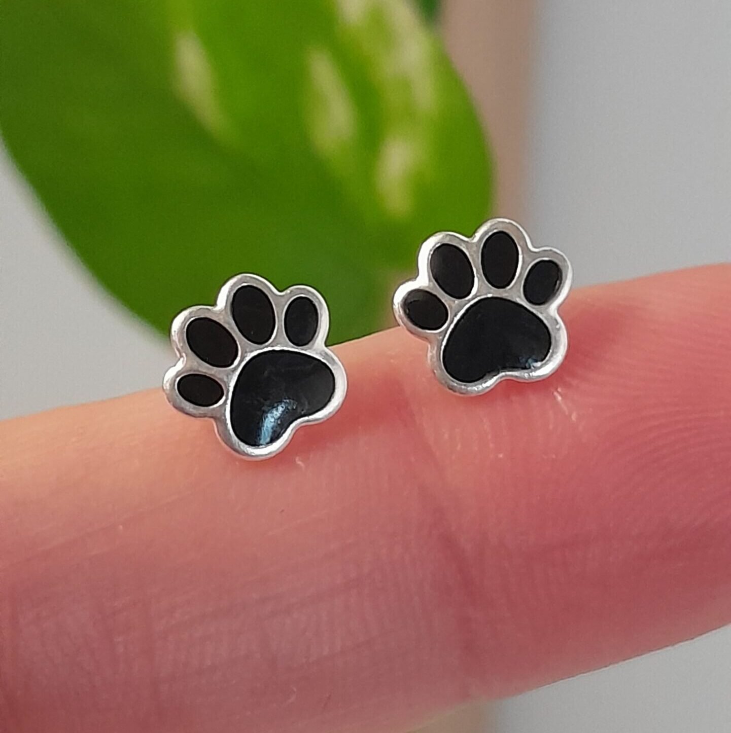 Aros Abridores Esmaltados huellas negro – Plata 925