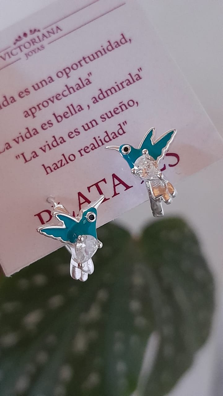 Aros abridores esmaltados pajarito – Plata 925