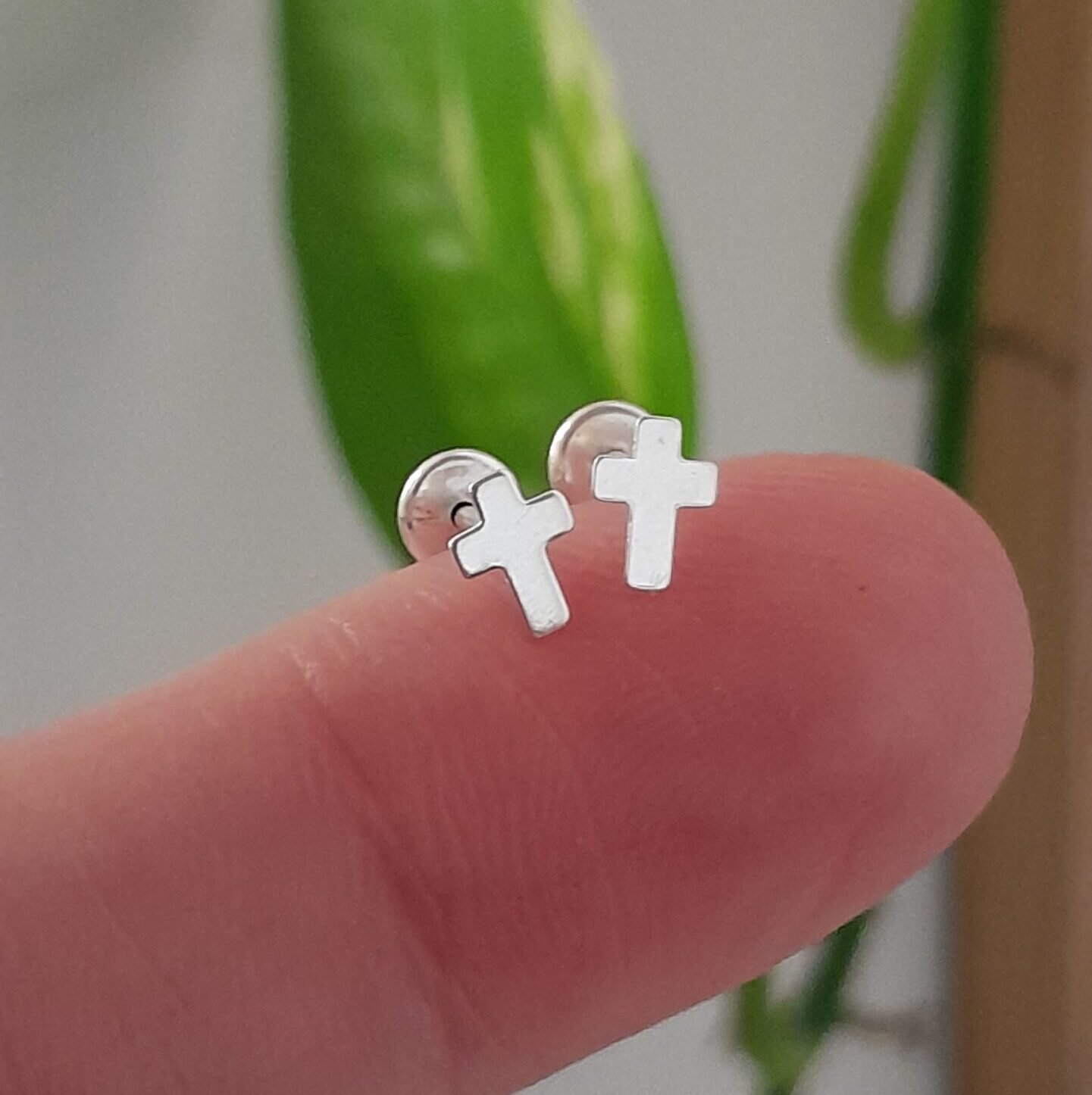 Aros Abridores lisos mini cruz – Plata 925