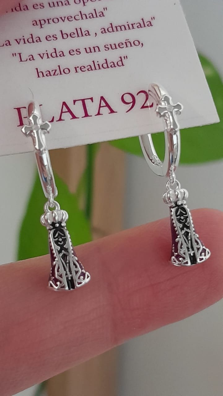 Aros cierre huggies virgen colgante- Plata 925