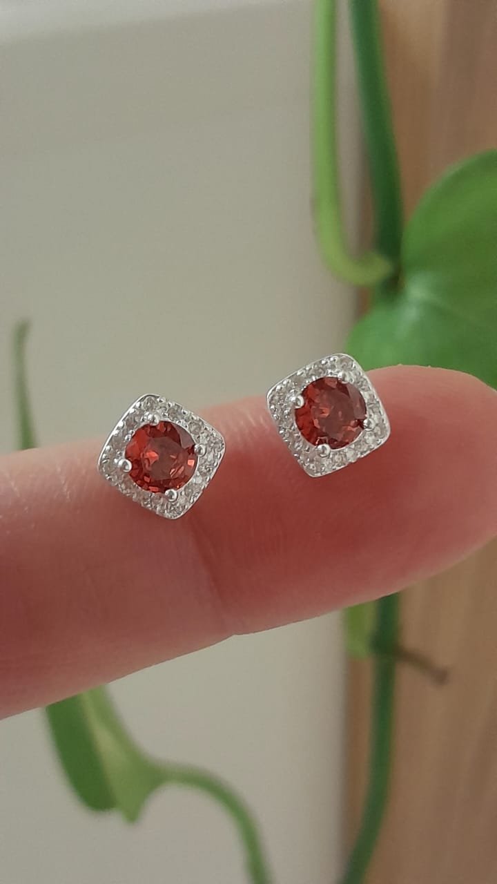 Aros pasante diseño piedra rojo – Plata 925
