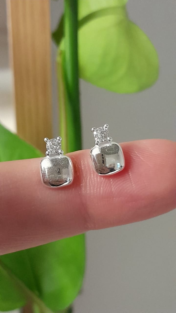Aros pasantes plata italiana mini cuadrados con brillo – Plata 925