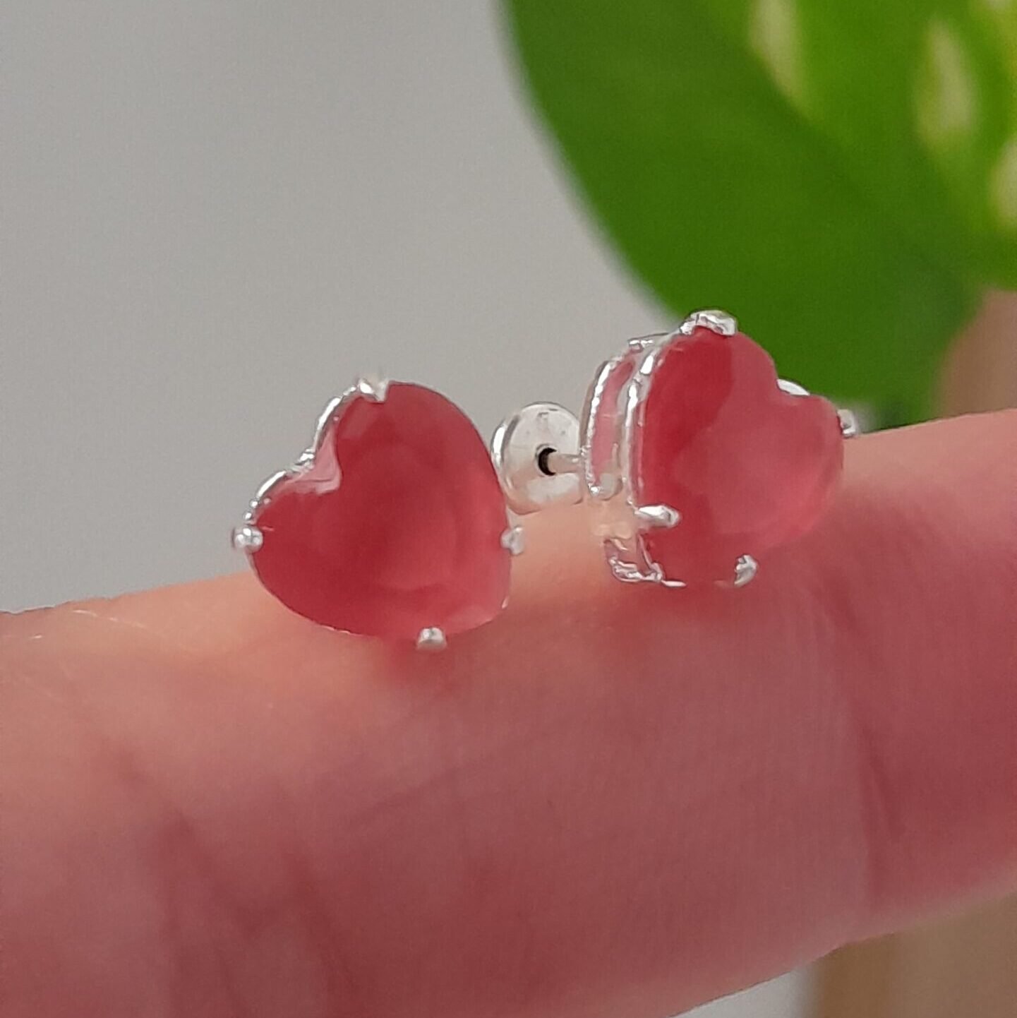 Aros Abridores brillo rosa nacarado corazón – Plata 925