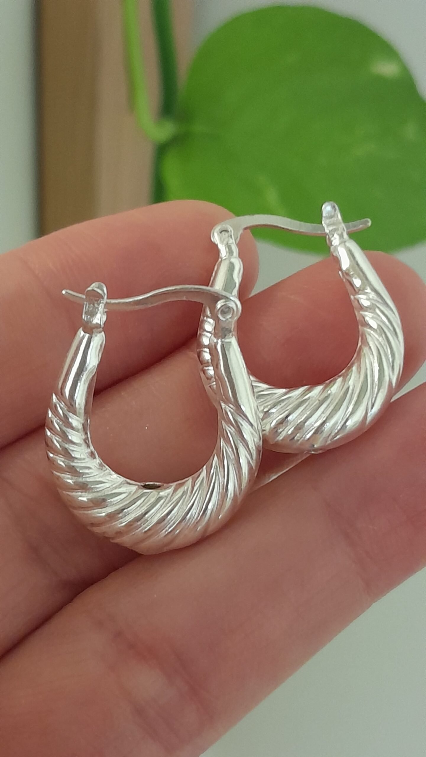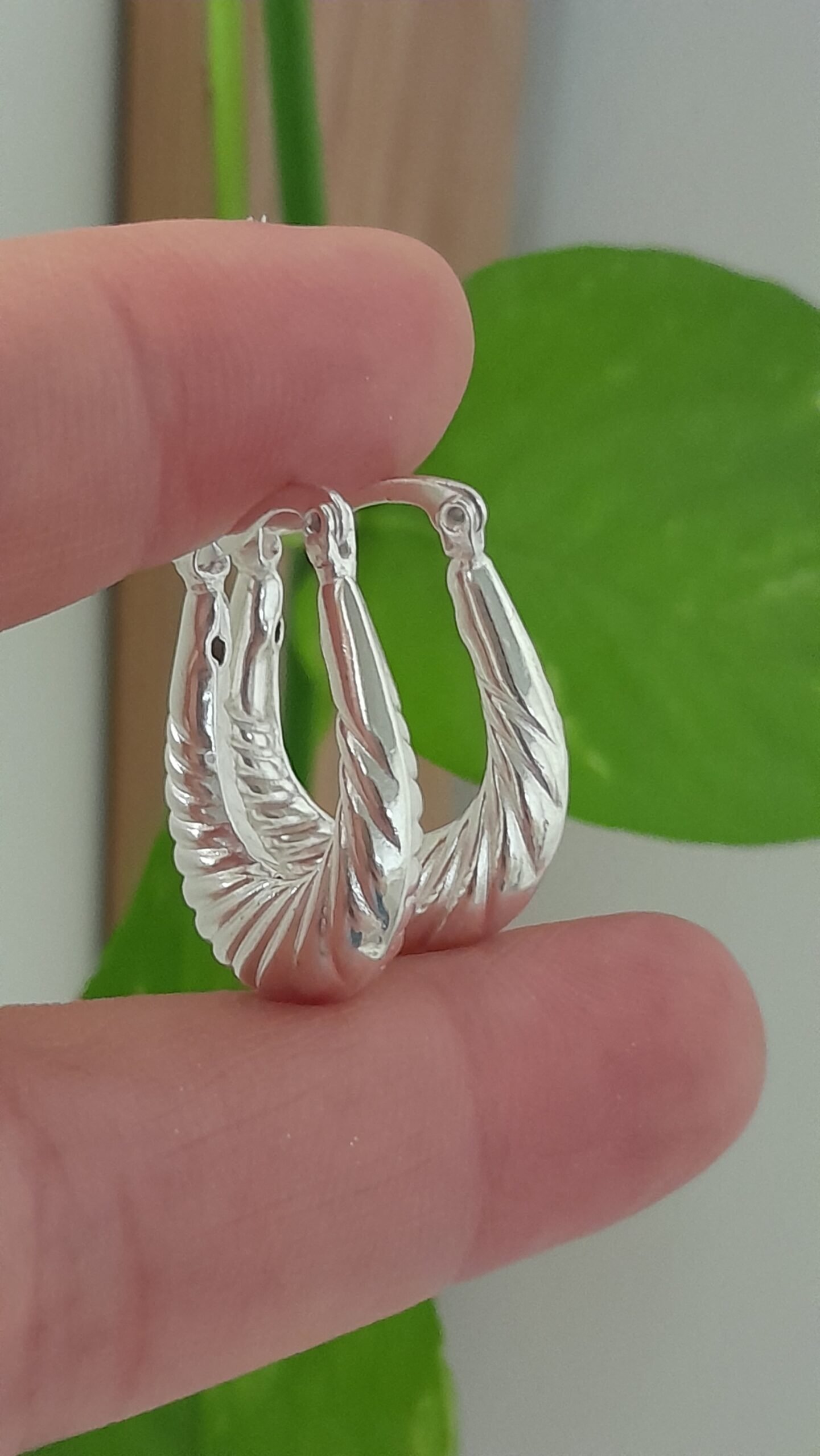 Aros huggies alargados con textura – Laminados